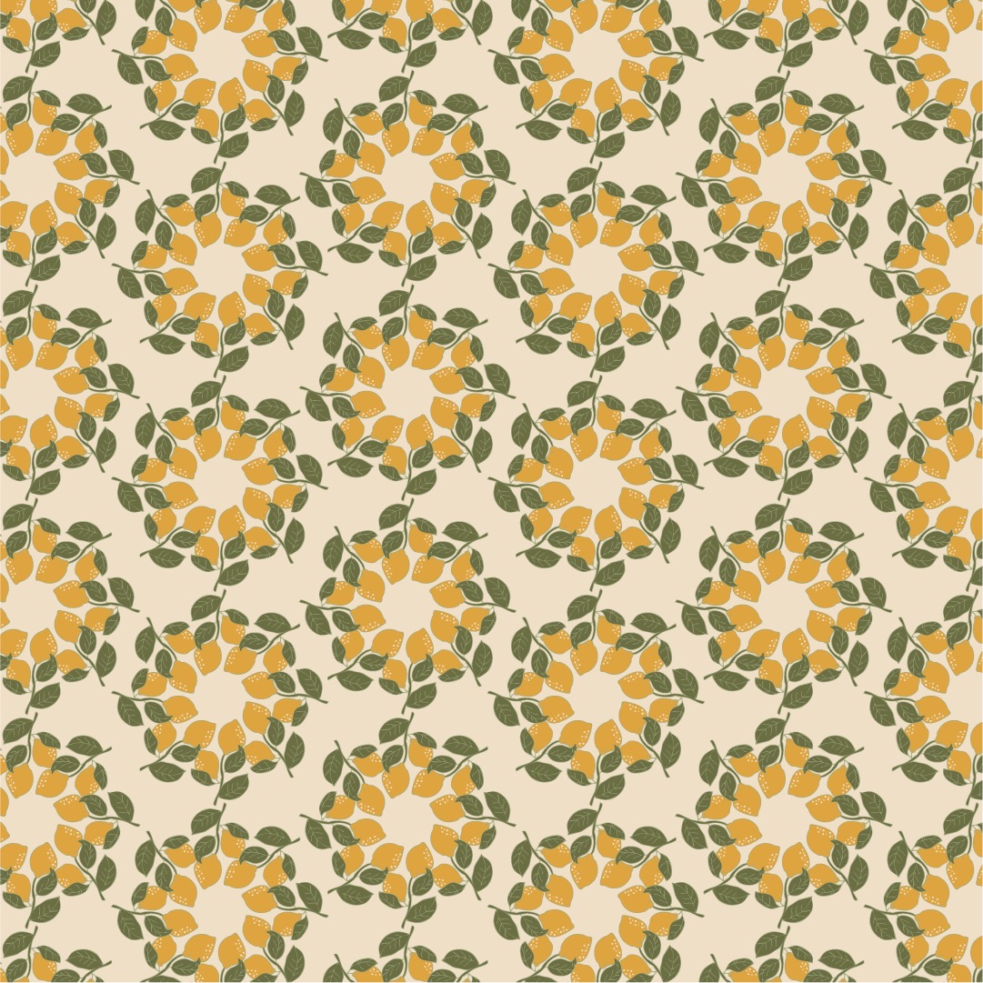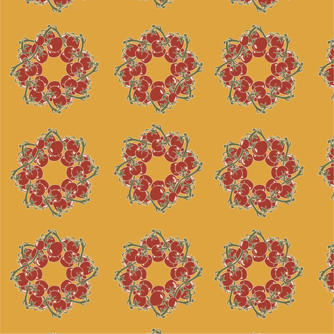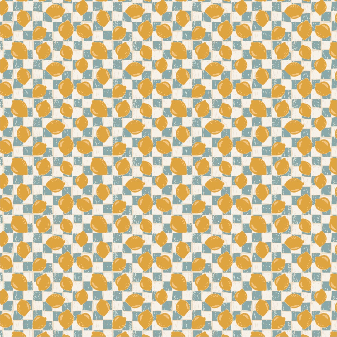 Motifs of lemons, splashes of red wine vinegar, and vine ripened tomatoes are nods to that evening—symbols of freedom, adventure, and making do with what you have. The collection started with a pattern showcasing the cucumber salad my grandmother always served, connecting old-world tradition with new-world self-reliance